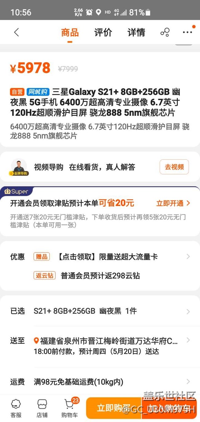 帖子名稱 s21+ 256g蘇寧自營5979元,能下手?