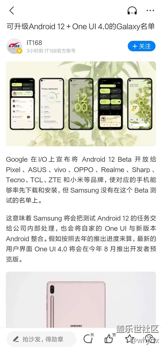 帖子名稱 三星Android 12及 One UI4.0升級政策