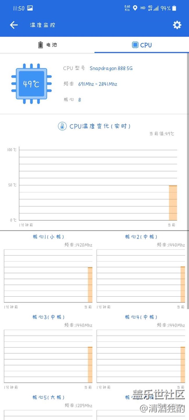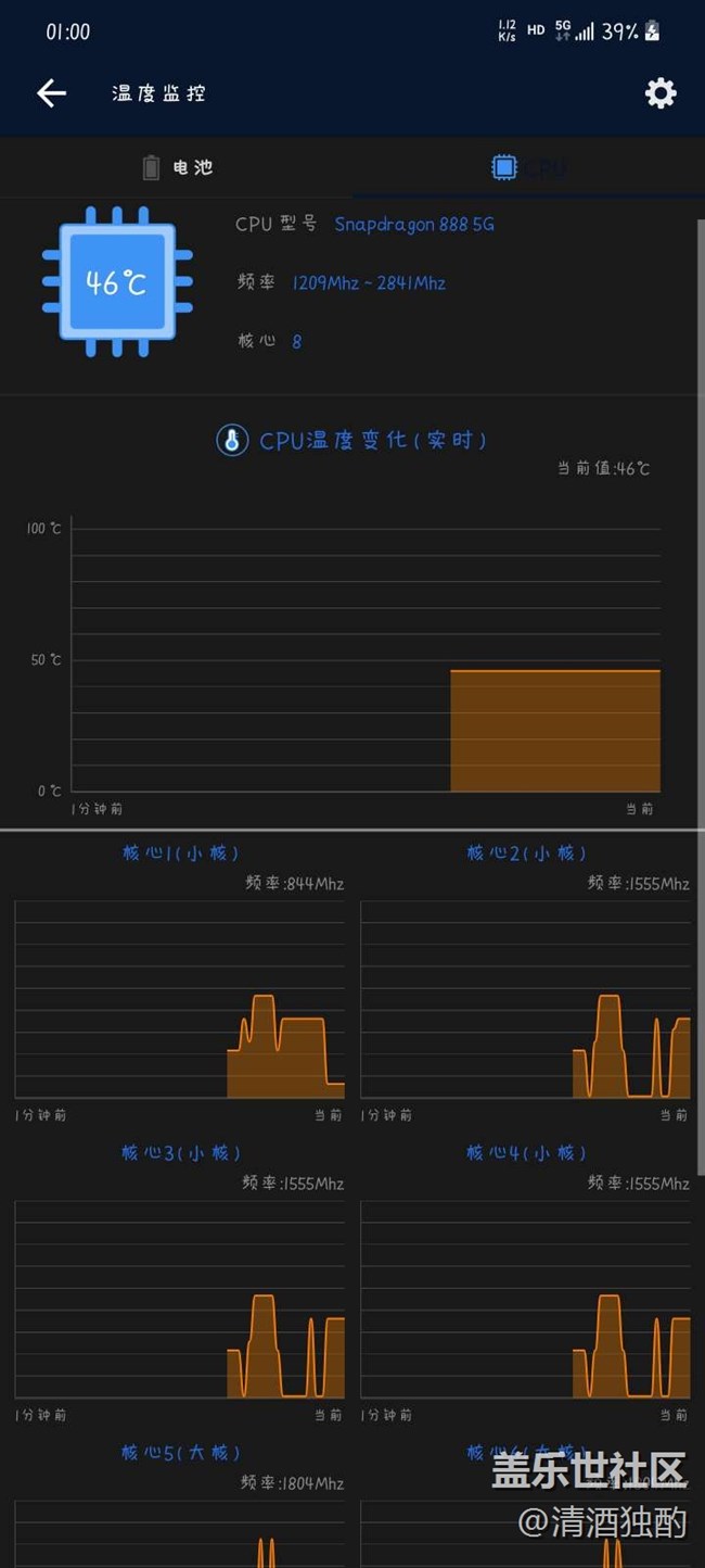 沒充電,沒開5G后臺就掛了一個QQ和微信,CPU溫度一直在46~49度,什么情況啊