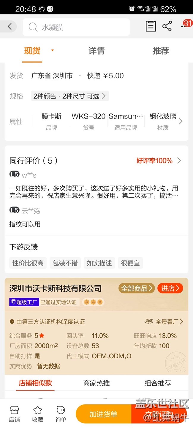 1688上的這家鋼化膜比8090的膜便宜太多了,雖然通透度差一些但是厚度一樣,膜的邊緣滑潤(rùn)不擱手,而且膜不會(huì)比屏幕小一圈,彩虹紋沒(méi)有8090的嚴(yán)重,極具性價(jià)比,指紋當(dāng)然也沒(méi)有問(wèn)題,0.15M,妥妥的!!推薦!推薦!買5張都沒(méi)8090的貴!