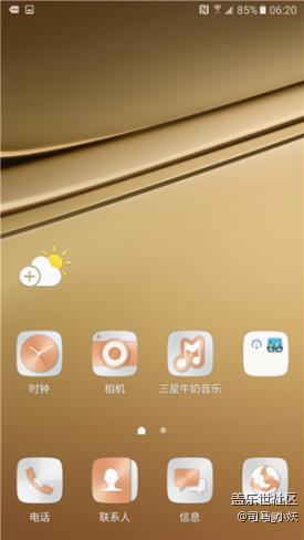 三星Galaxy C7采用基于Android6.0.1深度定制的TouchWiz,關(guān)于這款系統(tǒng)我們已經(jīng)很熟悉了,不過(guò)三星Galaxy C系列根據(jù)不同的機(jī)身顏色定制了專(zhuān)有風(fēng)格的UI,筆者的這臺(tái)楓葉金版C7則內(nèi)置了一套名為Gold Platinum的主題,與金色的機(jī)身相互映襯,看起來(lái)金屬質(zhì)感濃烈。