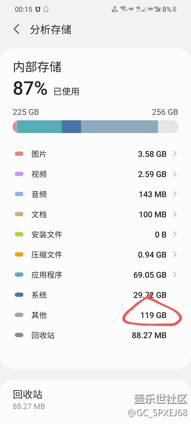 買(mǎi)的8+256,沒(méi)咋用儲(chǔ)存就剩二十多G了,看了下,一個(gè)其他就占了一半,有人知道怎么弄嗎?
