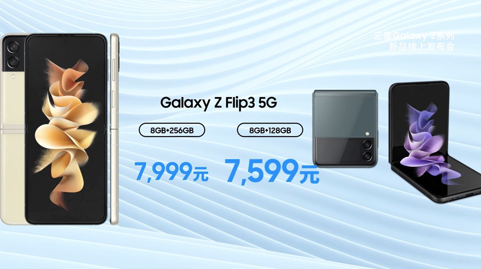 Galaxy Z Flip3 5G的價格也來啦~8+128GB售價7599元,8+256GB售價7999元,你覺得,這個價格怎么樣~