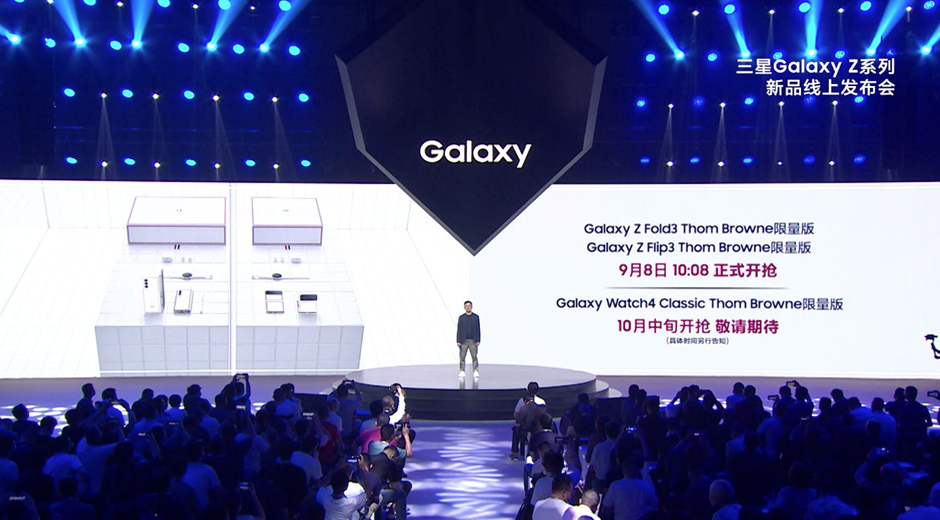 三星電子大中華區(qū) 首席市場官 馮恩 上臺,為大家?guī)鞧alaxy Z Fold3 Flip3 THOM BROWNE限量版,哇哦~好期待呢~