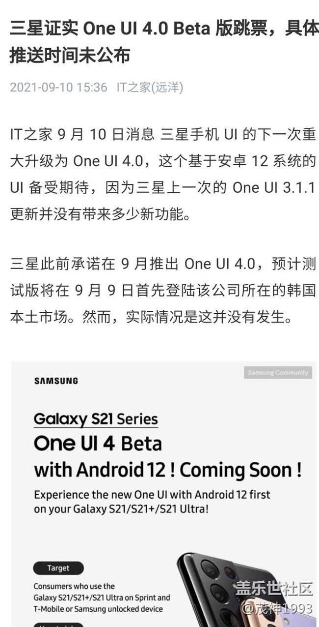 帖子標(biāo)題: one UI4.0beta推遲