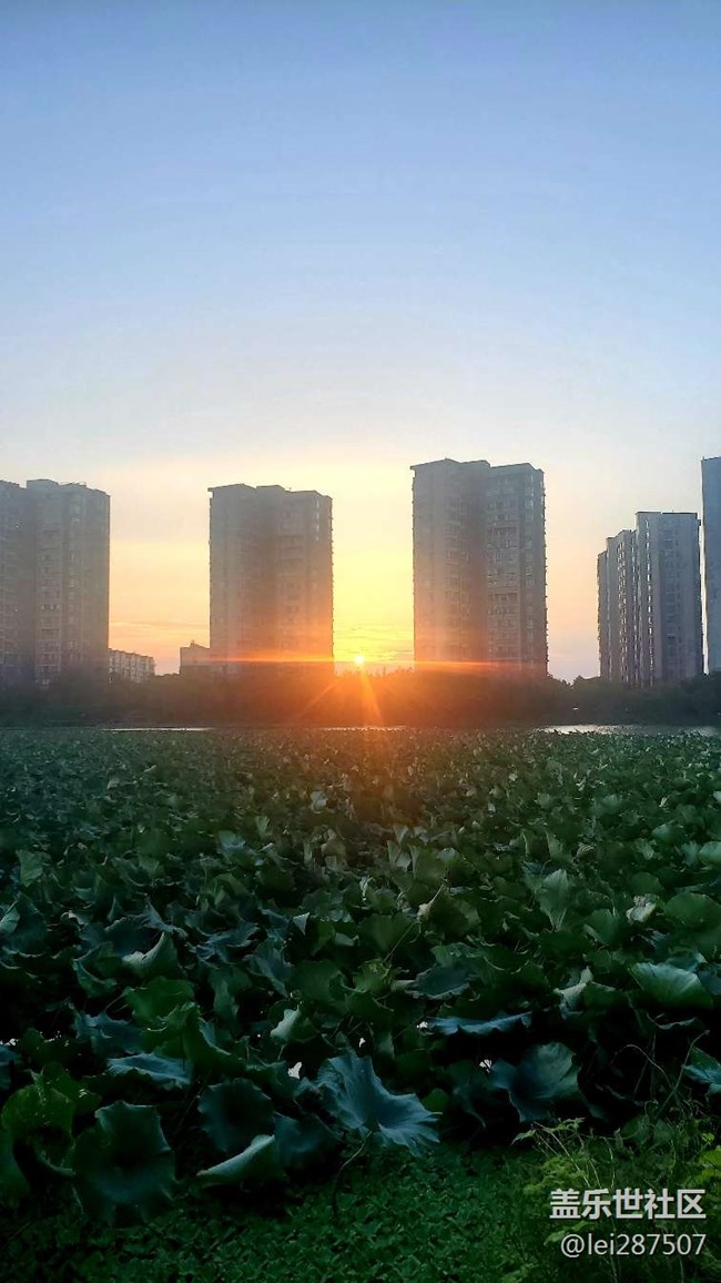 早晨沿小區(qū)湖邊晨跑,偶見日出美景。