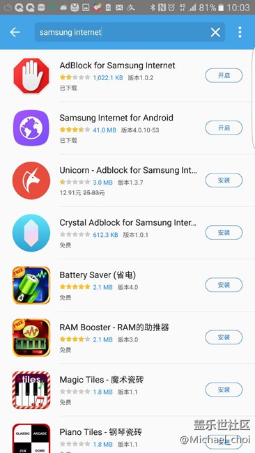 在Galaxy 應(yīng)用商店可以下載更新三星手機(jī)自帶瀏覽器了,4.0.10-53。名字叫: samsung internet for Android