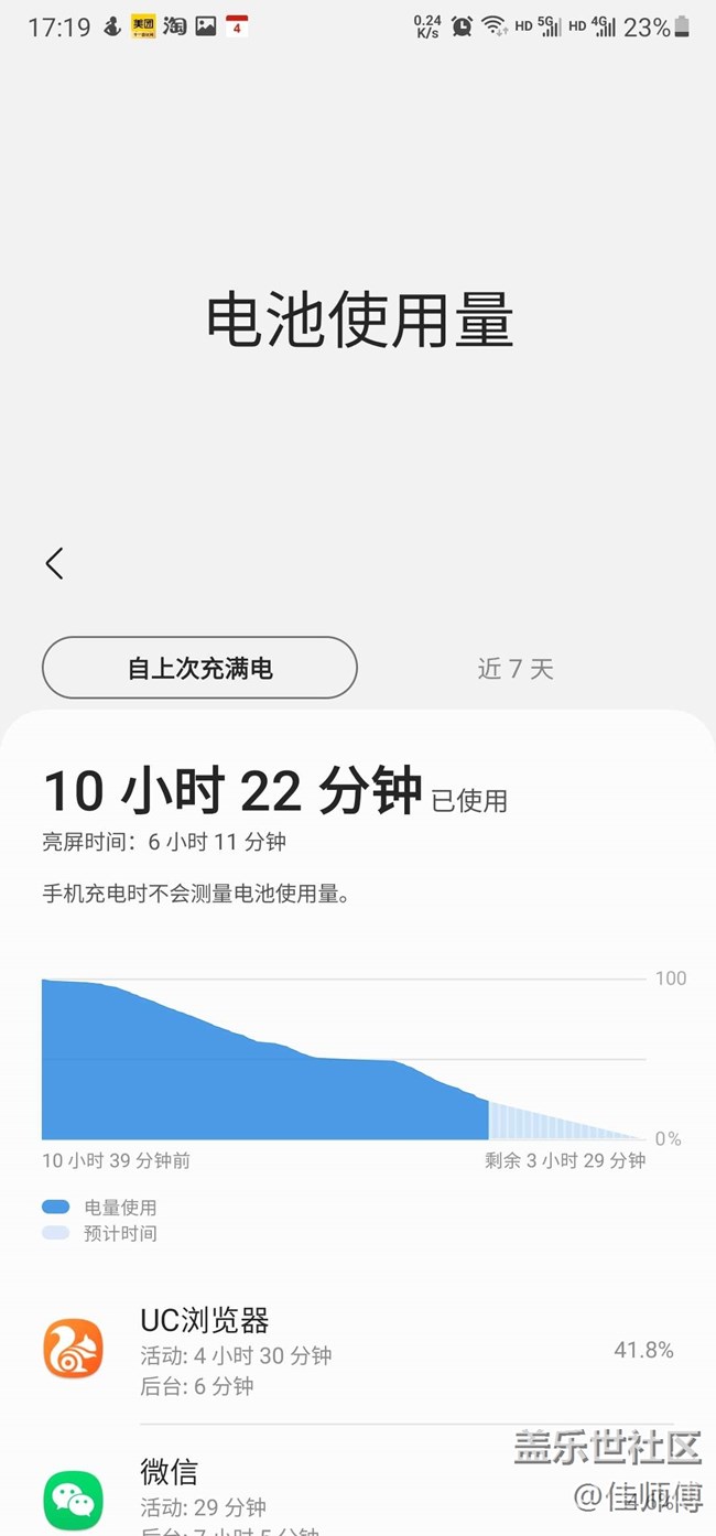 平常上班,沒什么時間玩手機(jī),一天下來也就兩個小時左右亮屏?xí)r間,電量到下班時候剩20左右。