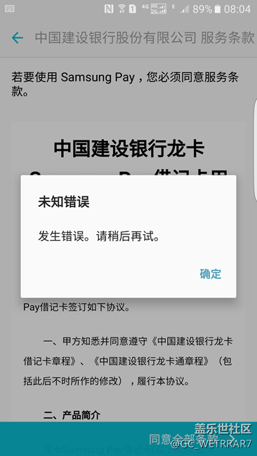 去京東換了個屏升級了一下系統(tǒng)三星PAY不能綁定建設銀行卡,求助