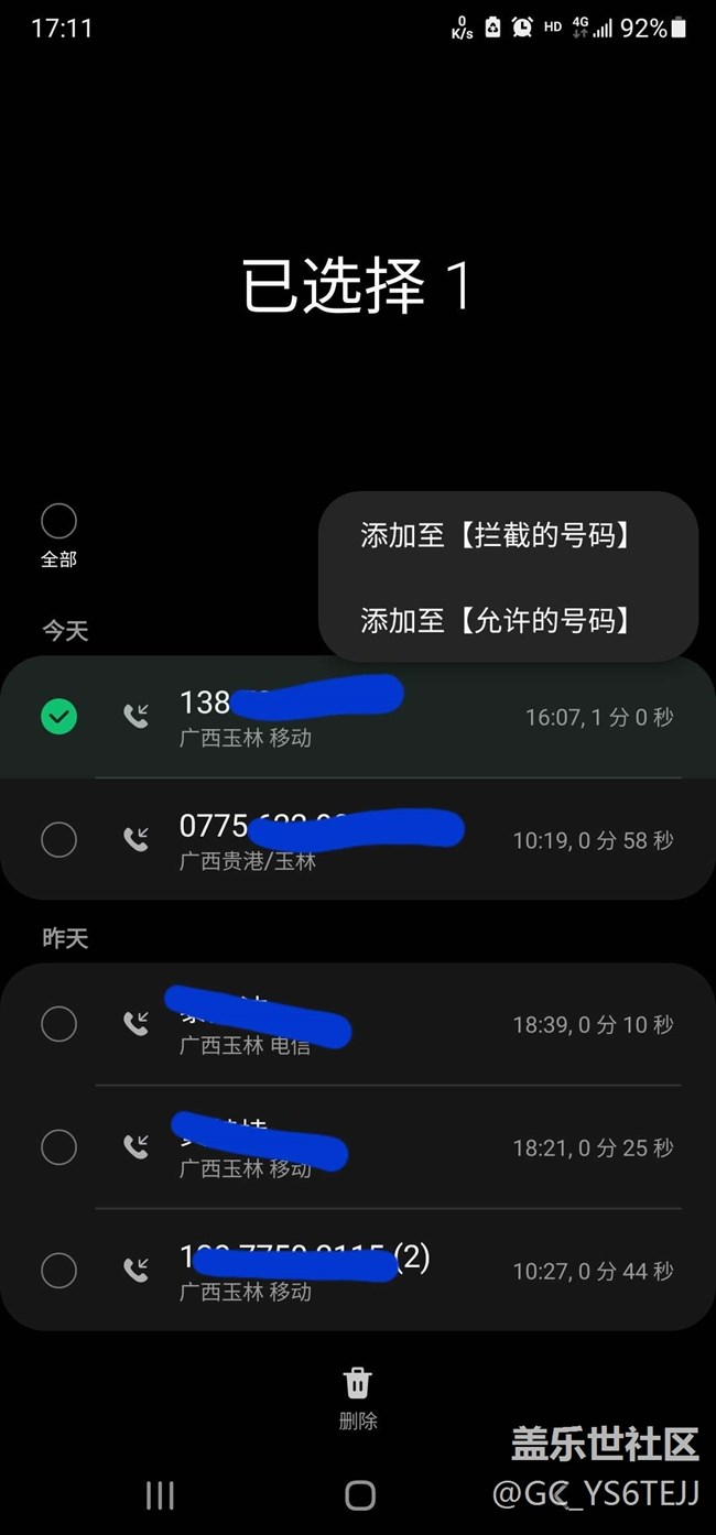 只有添加至 攔截的號碼,和允許的號碼