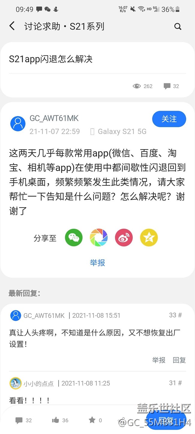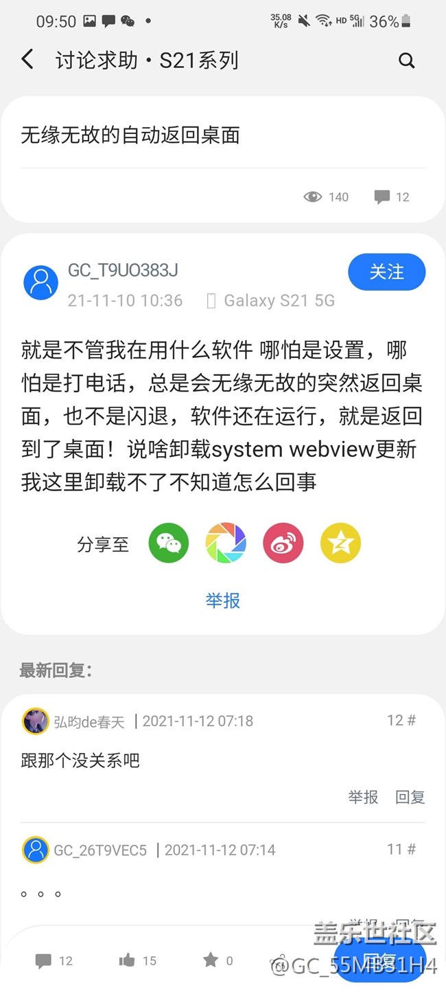 帖子名稱 s21在應(yīng)用中頻繁退回桌面