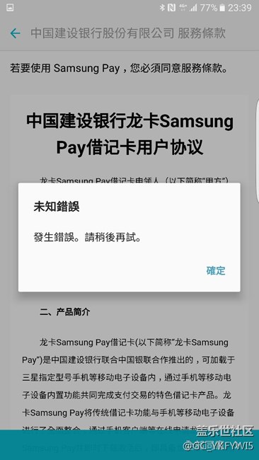 帖子標(biāo)題: 三星呸綁定建設(shè)銀行龍卡總是顯示未知錯誤