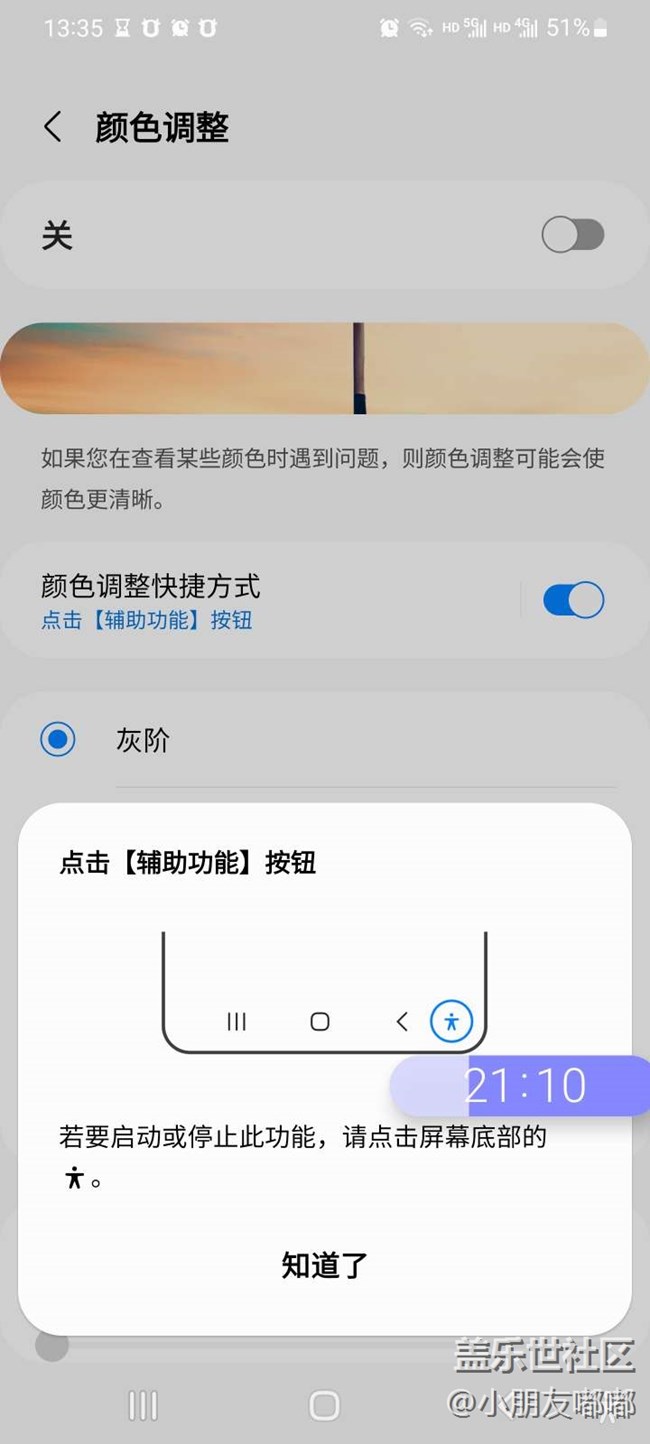 屏幕右下角就會多出一個輔助功能按鈕,可一鍵切換彩屏與灰階。