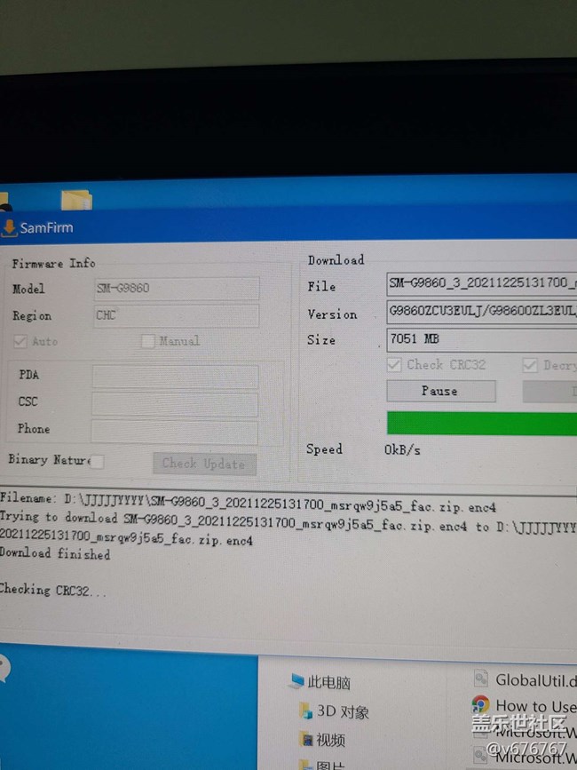 用Samfirm,model型號寫SM-G9860,region地區(qū)CHC,下載速度賊快。自己一直都喜歡全部清空線刷,所以正合我意,包已經(jīng)下好,現(xiàn)在就手更新