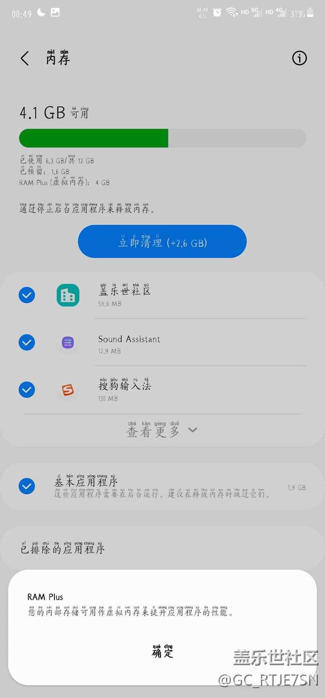雖然開機(jī)占用7個g但是這次偷偷更新加入了4g虛擬內(nèi)存,輔助軟件運(yùn)動