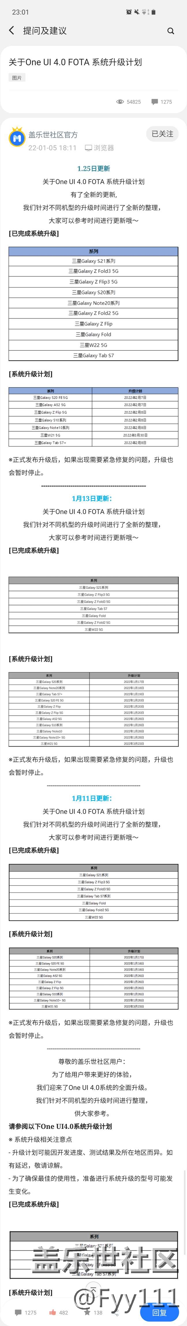 關(guān)于oneUI 4.0的升級(jí)計(jì)劃為什么要搞出2份?不同機(jī)型的開發(fā)進(jìn)度本就會(huì)受到各種不確定因素影響,圖1的計(jì)劃表是2021.11就已公布,后續(xù)看到S10系列有望提前更新,突然又經(jīng)過幾次推遲,直到原計(jì)劃日期2022年2月,兜兜轉(zhuǎn)轉(zhuǎn)又回到原地?既然如此,為何又要發(fā)布有望提前更新的公告?咱說好的2月就2月,大版本的開發(fā)進(jìn)度和測試本就費(fèi)時(shí)費(fèi)力,咱多保守一點(diǎn),盡力把它做做好不比現(xiàn)在倉促“鴿鴿鴿”強(qiáng)??新春佳節(jié)非要搞得大家怨聲載道才好么?