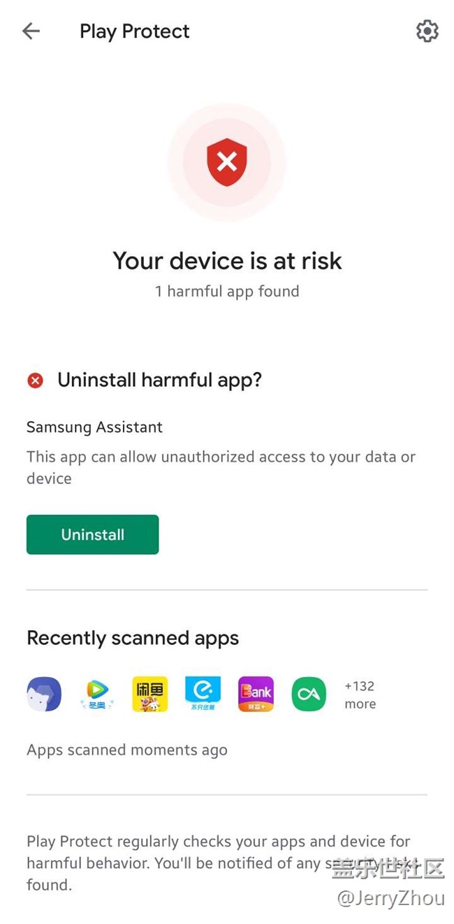 今天谷歌商城掃描的時候給我報錯了,打開一看居然是三星助手。