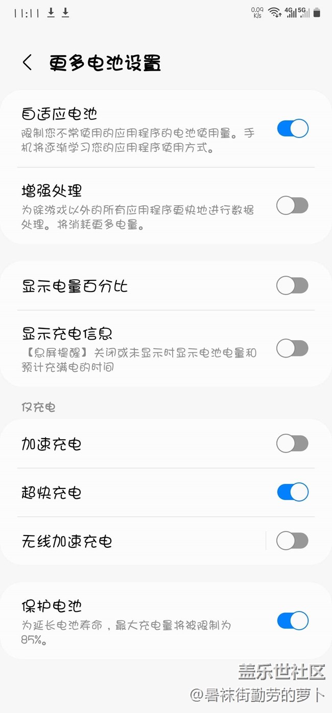 你們升級后那個電池選項充到85開了嗎? 圖片