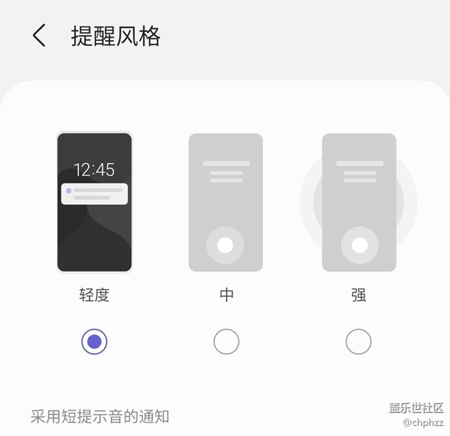 已經(jīng)選了風(fēng)格為“輕”,結(jié)果提醒時(shí)還是使用風(fēng)格“中”(鎖屏?xí)r提醒依舊全屏顯示)