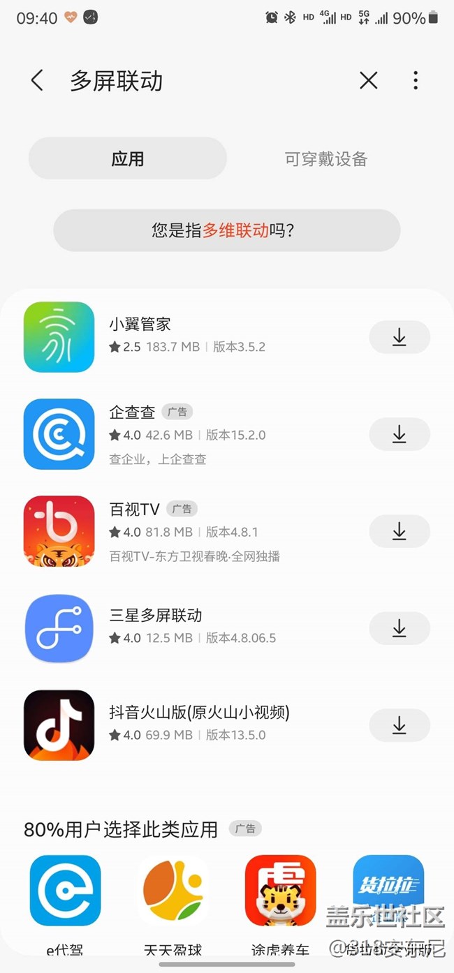 一,手機(jī)的應(yīng)用商店搜索三星多屏聯(lián)動(dòng)在手機(jī)安裝客戶端