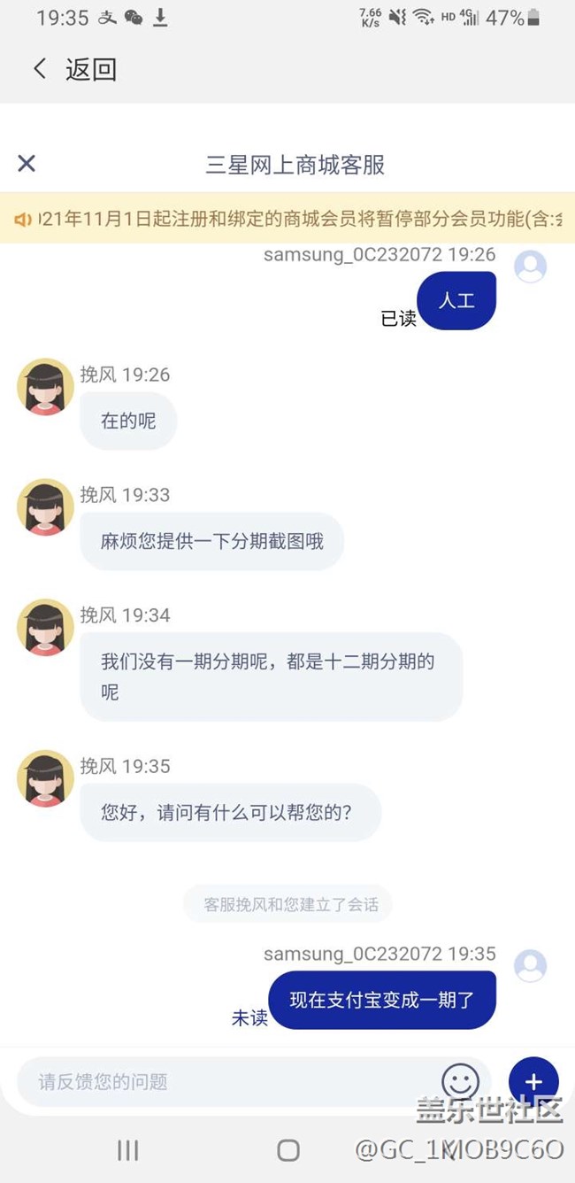 一直用Apple手機,和夫人三星手機換用幾天,感覺不錯,于是在三星網(wǎng)上商城預購了三星S22手機,按步驟確認兩次12期免息分期后,確認付款。可發(fā)現(xiàn)在花唄里變成一期,想分12期要付利息。期間兩個星期和三星網(wǎng)上商城客服溝通多次,每次都是解釋一大堆,然后讓等答復,再次問是否解決,再讓重復開頭訴求,如此反復多次。忍無可忍要求投訴,讓聯(lián)系三星電子售后電話,與之溝通好幾次后,又被退回三星網(wǎng)上商城客服熱線,最后答復無法處理,理由是我選的一期??砂准埡谧拥念A購賬單上顯示是12期免息,客服竟然不認。經(jīng)過這次,看出三星客服水平和Apple客服差的不是一星半點,市場占有率越來越小不是沒有原因的。