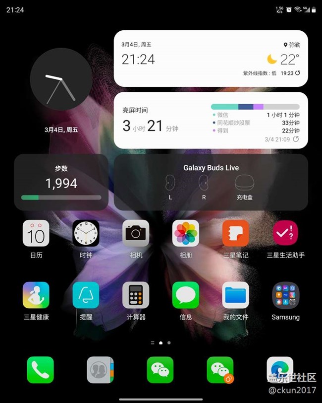 詳細(xì)看視頻,系統(tǒng)原裝的動(dòng)態(tài)壁紙,原本只能在鎖屏下實(shí)現(xiàn)動(dòng)態(tài)效果,目前可以在鎖屏和主界面同時(shí)實(shí)現(xiàn)動(dòng)態(tài)效果了,很贊【三星fold3實(shí)現(xiàn)系統(tǒng)動(dòng)態(tài)壁紙?jiān)谥髌聊粍?dòng)態(tài)效果,原畫質(zhì),很贊-嗶哩嗶哩】 https://b23.tv/GknZQd2