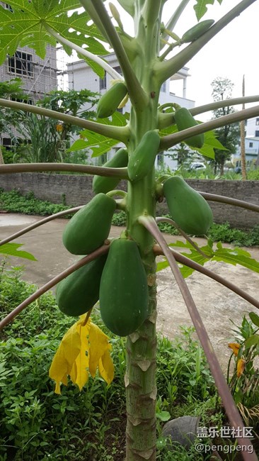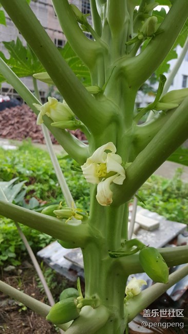 種了多年木瓜,現(xiàn)在才看見它開花。