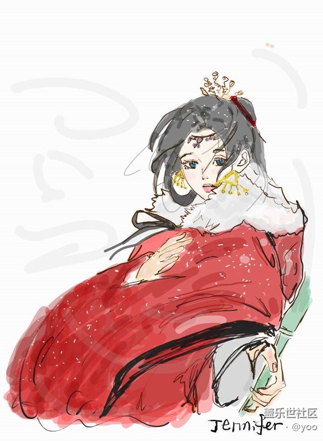 三星筆記畫畫‖紅衣白雪美女來了 圖片