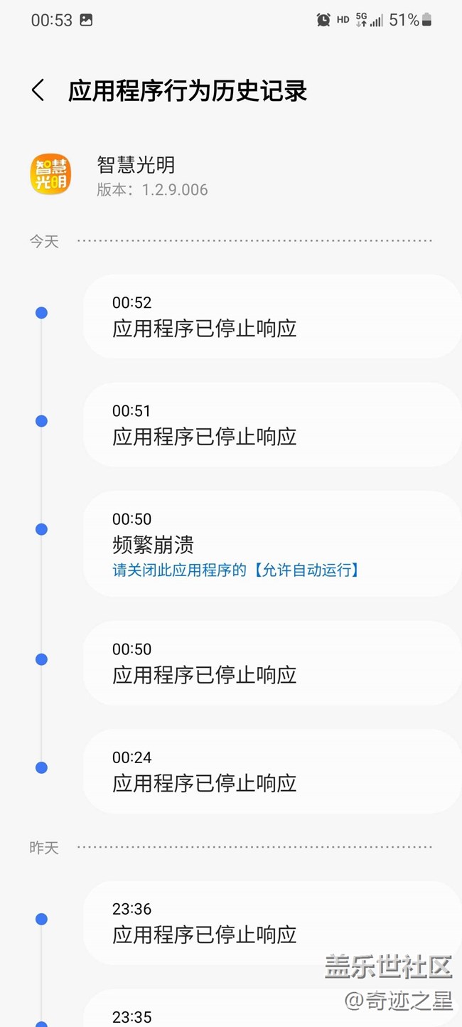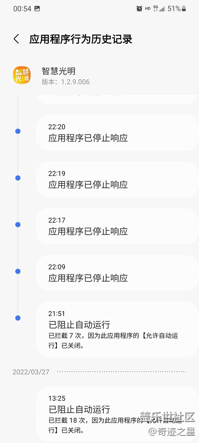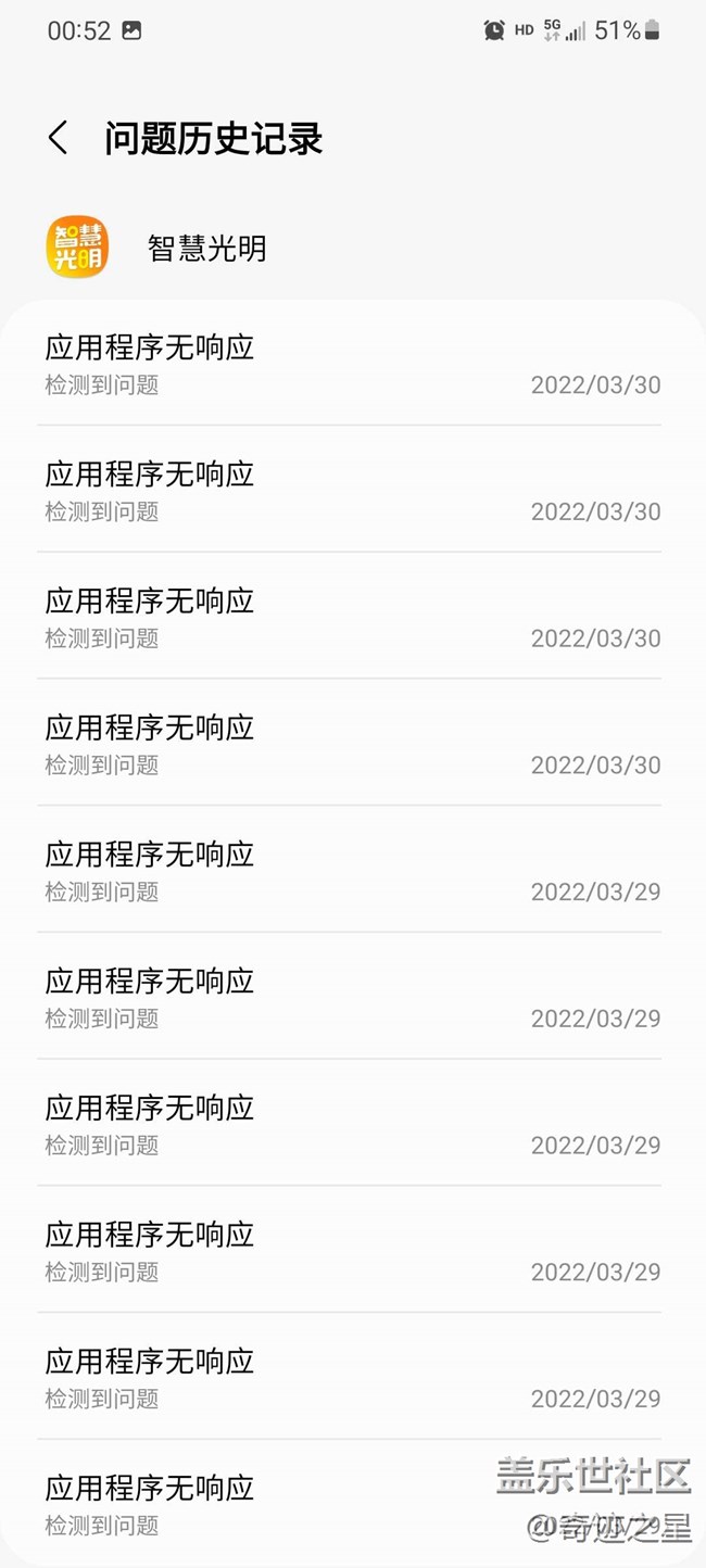 我的Apple iPhone 13 Pro Max 都可以正常使用,這么久了,一次都沒(méi)卡死過(guò)。就這三星手機(jī)一天卡死好多次,難道三星9千多的旗艦手機(jī)只能當(dāng)備用機(jī)用?國(guó)行三星,你能爭(zhēng)口氣嗎?你說(shuō)氣不氣人,鬧不鬧心?(注:智慧光明是深圳光明區(qū)小區(qū)和城中村使用的開(kāi)門(mén)用app)