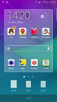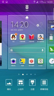 在主頁上長按即可調(diào)出桌面編輯界面,可以對墻紙、小組件、主題、屏幕網(wǎng)格進(jìn)行編輯,整個界面看起來更為清爽,編輯的圖標(biāo)也是契合了全新TouchWiz UI的簡潔清新設(shè)計(jì)風(fēng)格。并且這次三星官方給我們帶來了主題商店,滿足用戶的不同口味。