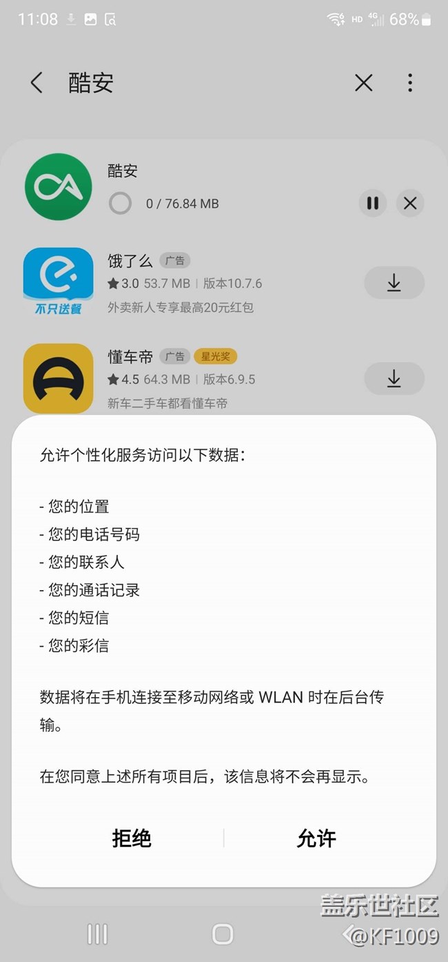 應(yīng)用商店一直要傳輸聯(lián)系人和通話記錄給騰訊和三星韓國,