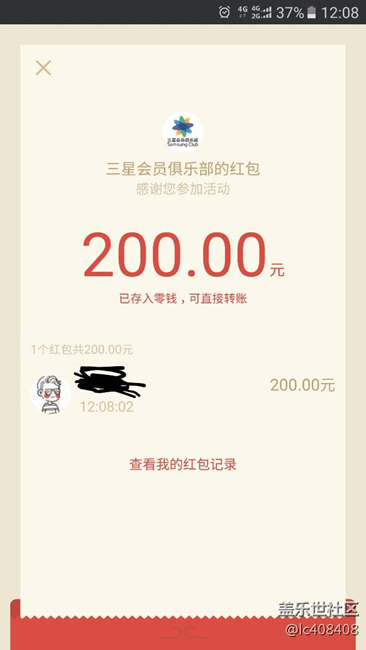 三星pay 綁卡紅包已到賬 圖片