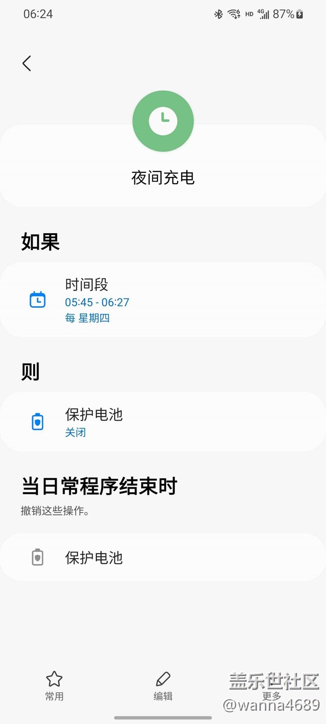 日常程序玩好了挺不錯的,那個充電保護(hù)可以選擇在特定時間段關(guān)閉,我是喜歡手機(jī)充一晚上的,早上在關(guān)閉一會充電保護(hù)剛好充滿。真的很方便,包括每天的星鉆簽到可以用日常程序配合觸摸宏使用,只不過我覺得插件剛開始挺有意思,但是有點卡頓就刪了。