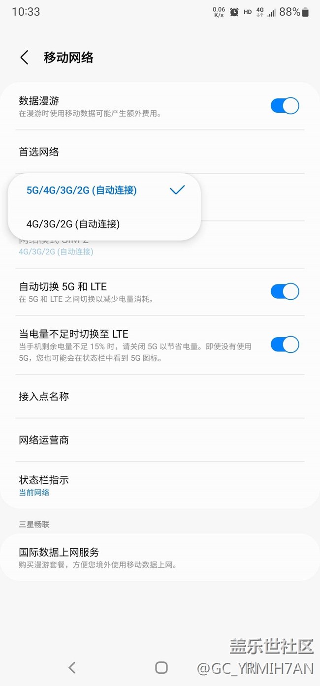 自從更新了最新的系統(tǒng)后,再也沒(méi)有5G信號(hào)了,開(kāi)關(guān)設(shè)置如圖你們還有5G信號(hào)嗎?一直顯示的是4G信號(hào)。