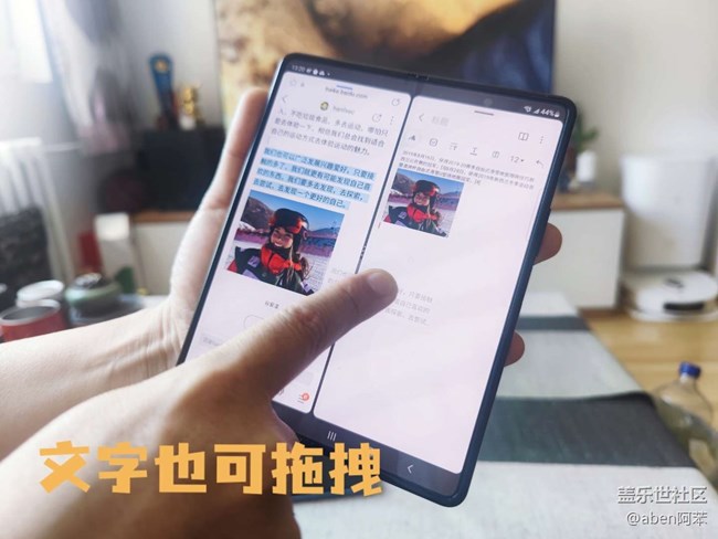 以我手上的這臺Z Fold3為例,雖然咱是一個(gè)腳后跟數(shù)碼博主,但查資料什么的也是必須的,所以,在瀏覽一些資料的時(shí)候,就直接分屏雙開瀏覽器和記事本。