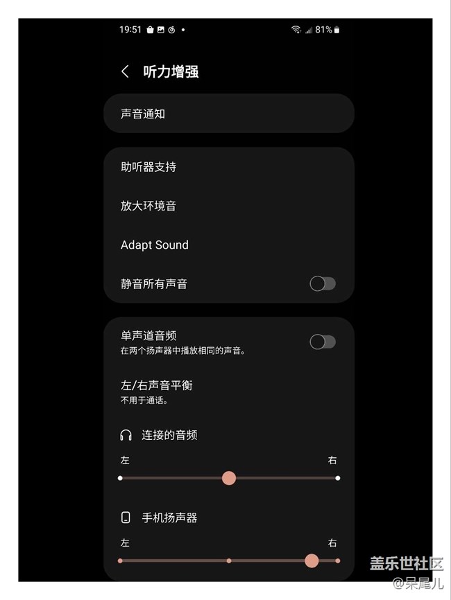 可以設(shè)置耳機和揚聲器的左右聲道平衡,也可以在很吵的地方打開“放大環(huán)境音”,即使身處舞池中央也能清清楚楚聽到女朋友電話那頭的每一個字[喵喵]