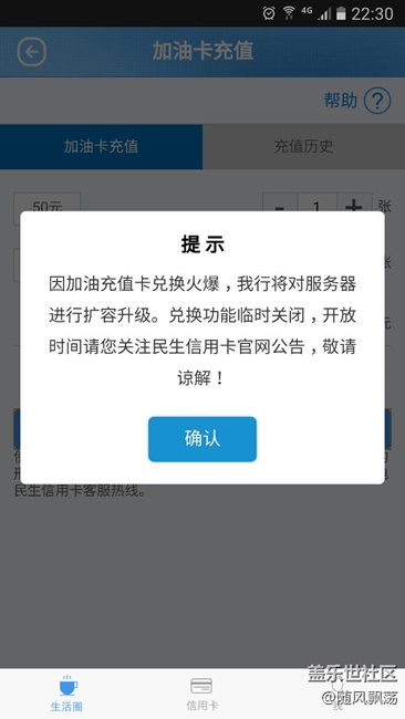 我在民生銀行辦理了信用卡,消費(fèi)后給的50元加油金,一直無法使用,有效期限過了,加油金也沒有了。下面是我截圖。