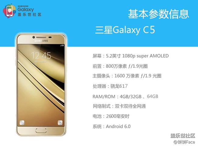 配置方面,三星蓋樂世 C5搭載驍龍617八核64位處理器,支持雙卡雙待全網(wǎng)通,卡2為多功能卡槽支持MicroSD存儲(chǔ)卡拓展,最大支持128GB;配備4GB內(nèi)存+32GB機(jī)身存儲(chǔ),電池容量為2600mAh。