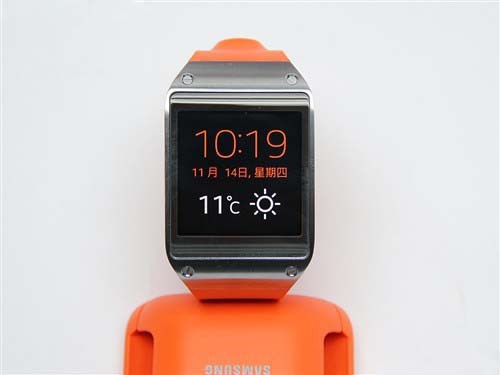2013年9月4日,三星正式推出了第一款智能手表設(shè)備Galaxy Gear,配置1.63英寸的Super AMOLED觸屏,金屬外殼,橡膠表帶,前端還搭載全高清1080P影像錄制的190萬像素自動變焦鏡頭。扭動手腕即可拍照呢~~支持NFC與藍牙配對,并內(nèi)置健身APP、SmartRemot智能遙控、S Voice等。