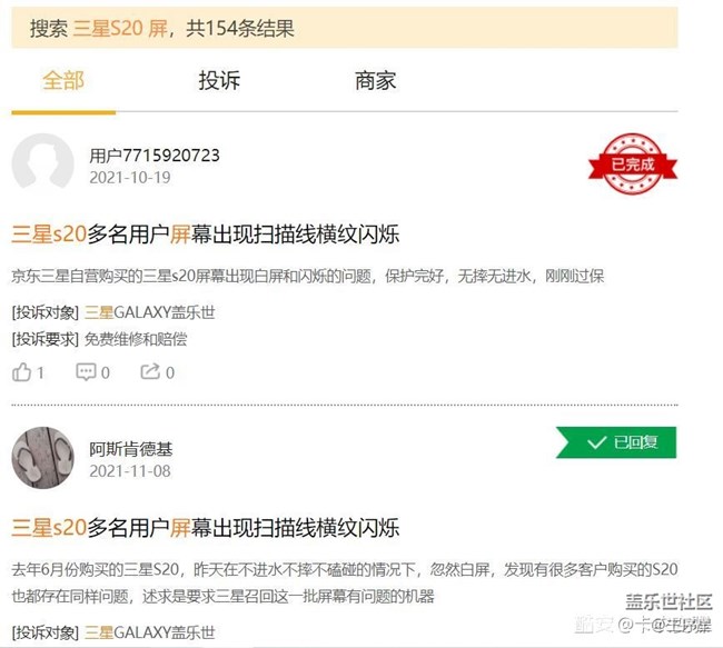 帖子名稱: 三星s20系列近期屏幕問題