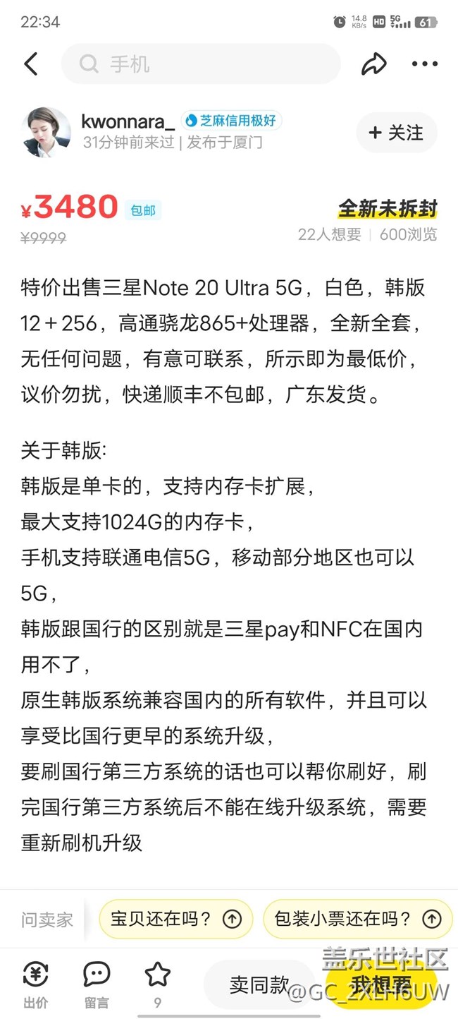 大佬們 咸魚上邊韓版的靠譜嗎?我看著價(jià)格挺低到全新 圖片