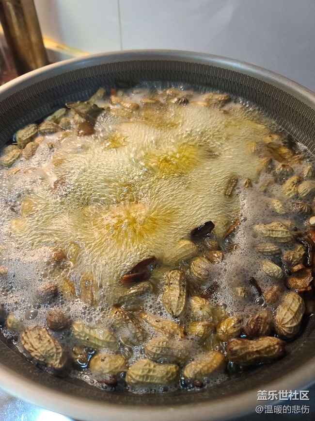 倒入花生,加水煮開(kāi)