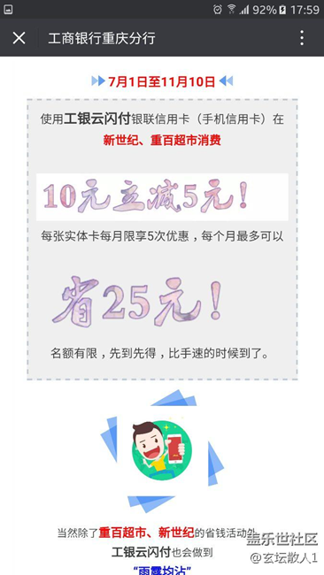 這段時(shí)間,三星智付活動(dòng)很多,活動(dòng)力度很大。在商場(chǎng)購物可享受折上折的優(yōu)惠。太給力了!