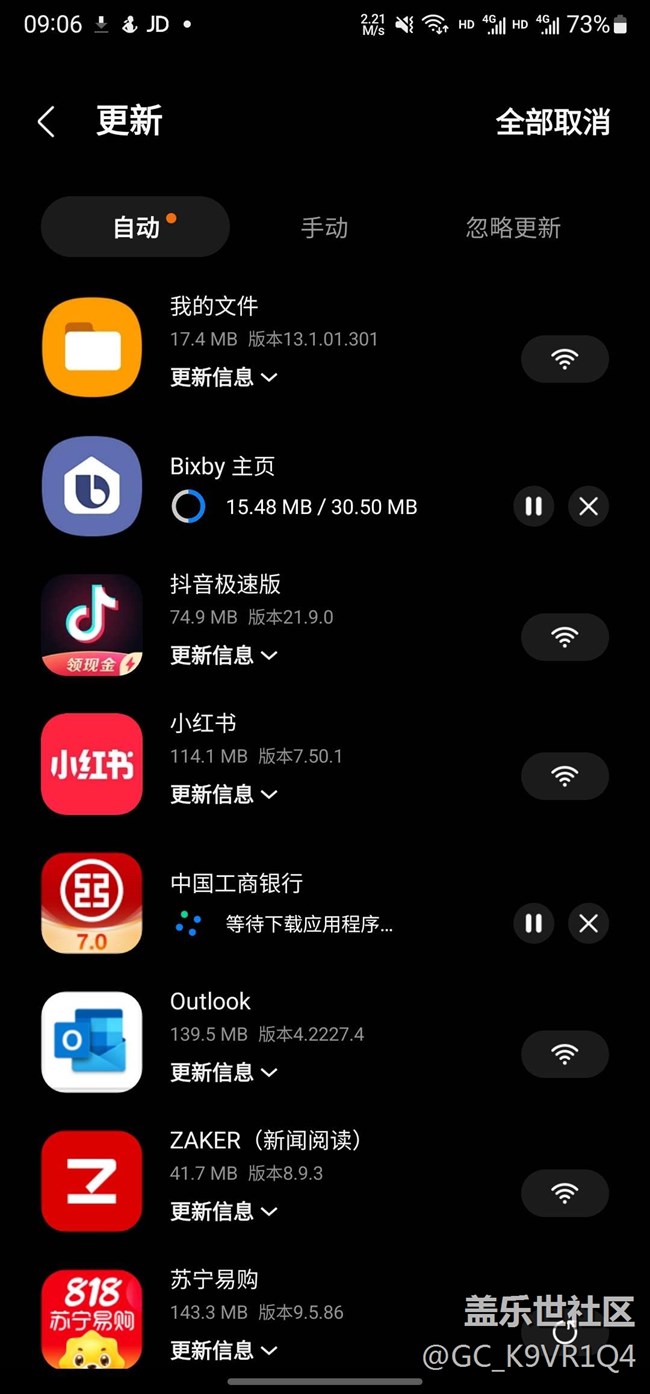 note20ultra應(yīng)用商店點(diǎn)擊更新出現(xiàn)WiFi圖標(biāo) 圖片
