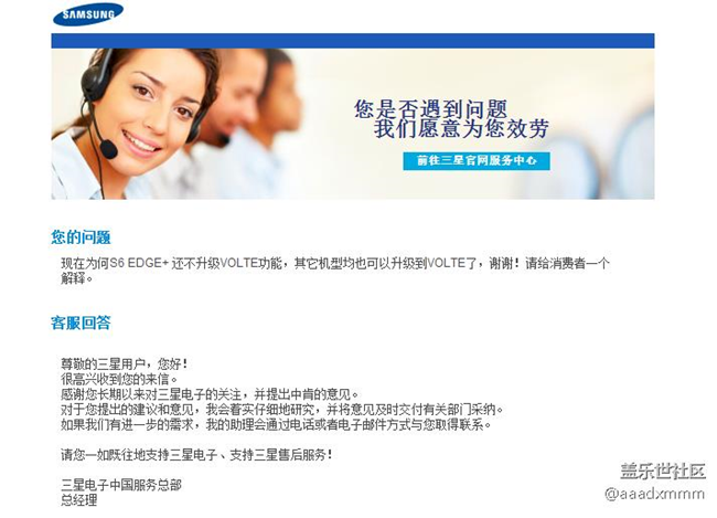 官方回復(fù)S6 EDGE+ 升級VoLTE的回復(fù),回答的如此敷衍,如下: