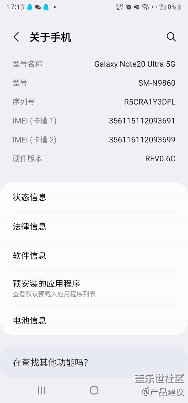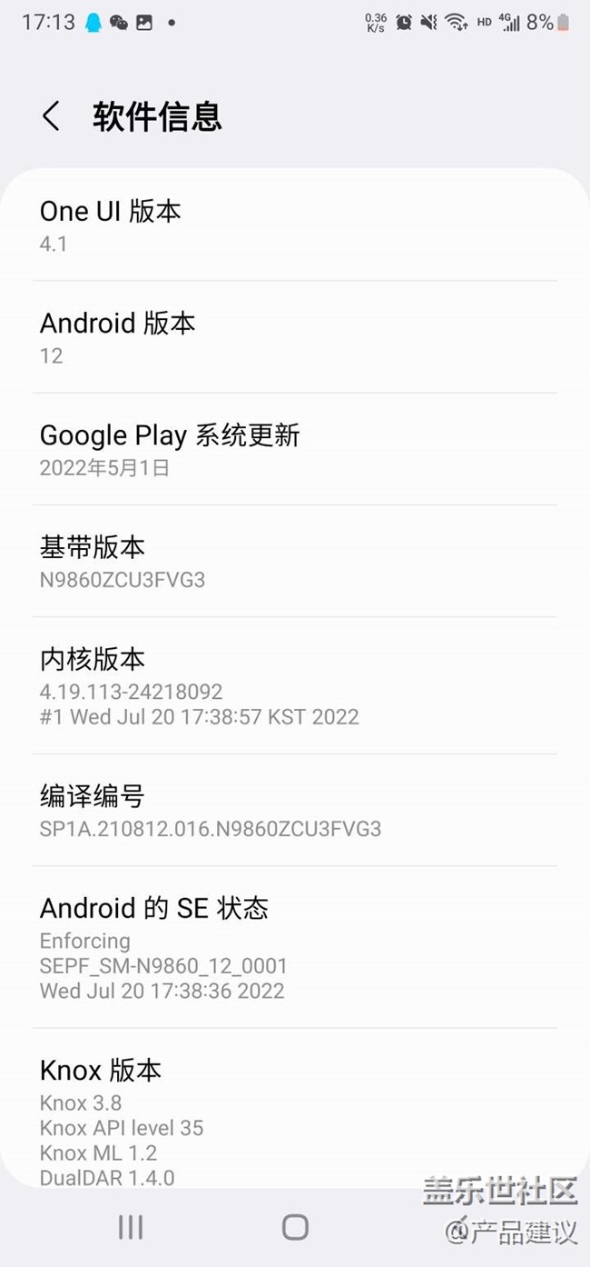 3.軟件信息:One Ul 版本:4.1,Android 版本:12;