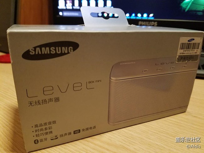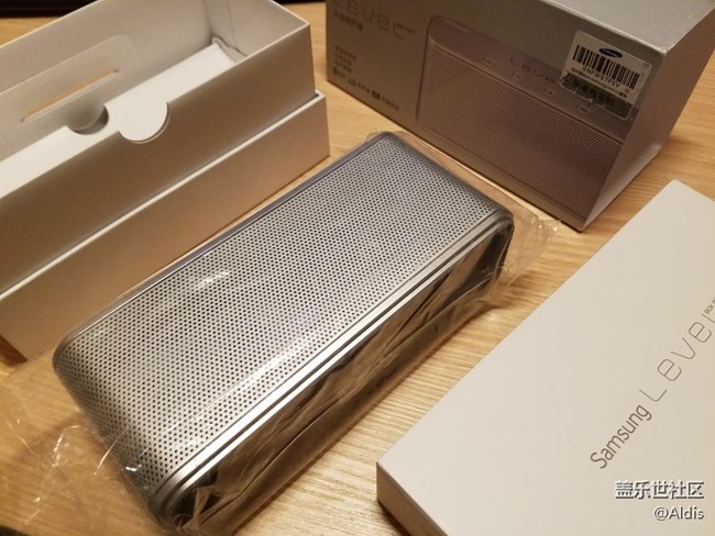 今天終于收到三星順豐寄來的無線音箱,打來外包裝銀色的金屬外觀,還具備NFC觸碰匹配的功能,美觀而且非常方便。