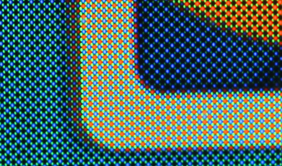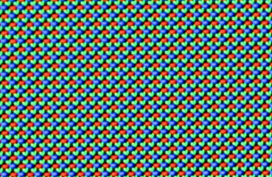 細(xì)心一看,AMOLED的屏幕仍然是Pentile排列,并不是標(biāo)準(zhǔn)的RGB排列,但是三星的工程師對像素點的排列作出改進(jìn),極大的改善了偏色的問題,如圖非常接近原色。
