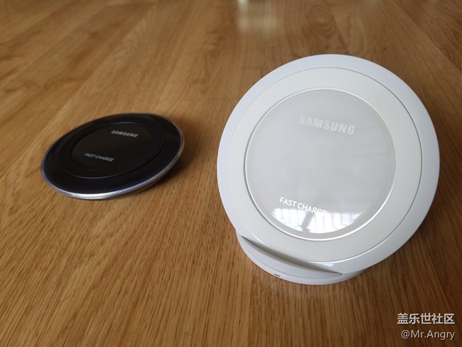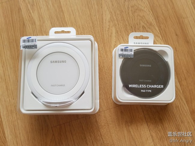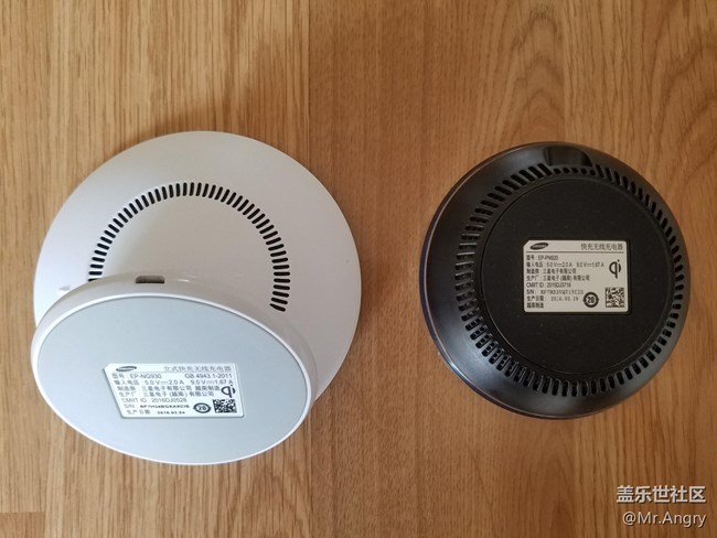 打開包裝,把新老無線充放在一起,果然還是新式的座充大~~而且大了一圈~~