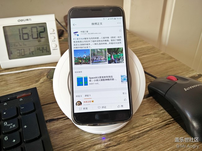 說到無線快充,不得不提一下這個(gè)充電速度。以我的S7為例(3000mAh電池),放在上面大概需要1小時(shí)40分左右充滿。(從20%)成績(jī)和二代充基本一樣。當(dāng)然,有的時(shí)候時(shí)間可能會(huì)到兩小時(shí)左右,這和你的擺放方式,手機(jī)殼的薄厚程度有關(guān)。畢竟在無線傳輸過程中,阻礙越多,傳輸效率越低么。原理和你家路由器信號(hào)穿墻差不多。